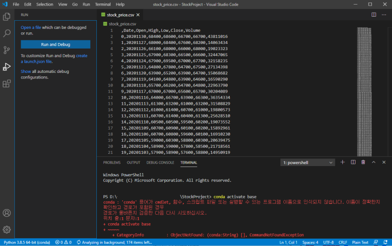 (conda : 'conda' 용어가 cmdlet, 함수, 스크립트 파일 또는 실행할 수 있는 프로그램 이름으로 인식되지 않습니다. 이름이 정확한지 확인하고 경로가 포함된 경우 경로가 올바른지 검증한 다음 다시 시도하십시오.)