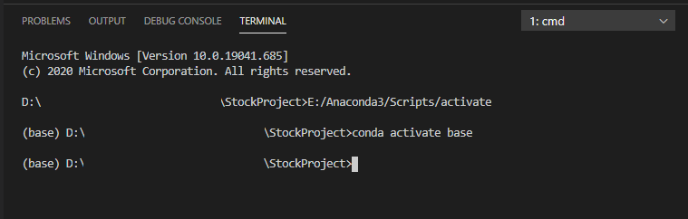 Command Prompt, cmd.exe를 선택한 뒤, 터미널을 재시작하면 된다.