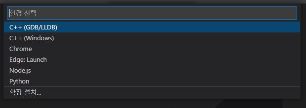 '실행 및 디버그' 버튼을 누르면 중앙에 환경 선택 목록이 나오는데, Django에 사용할 테니 Python을 선택해 준다.