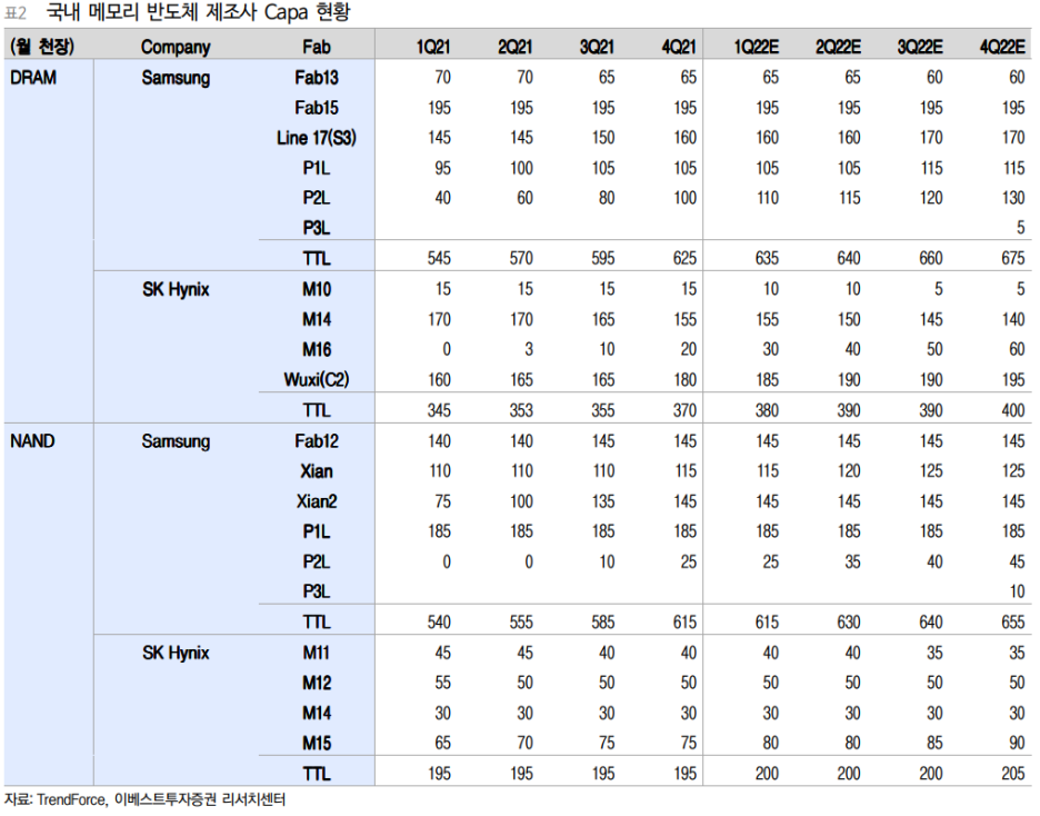 삼성전자는 P2 공장에서 더블스택을 접목해 176단(7세대)을 작년부터 생산 중이다. P3 공장도 176단 NAND 라인을 위한 작업을 진행하였고, 중국 시안 공장도 작년부터 128단 3D NAND 칩 생산하는 등 기존 라인도 미세공정 전환을 위해 투자를 진행 중이다. 올해 말이나 내년에는 128단 싱글 스택에 96단을 더한 224단 제품을 공개할 것으로 보인다. SK하이닉스도 컨콜을 통해 176단 양산 확대와 238단 개발도 진행 중인 것을 밝혔다.