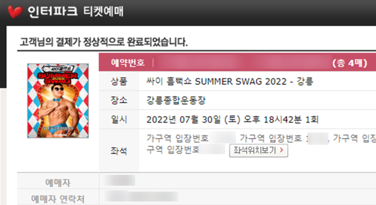 여러분들도 티켓팅 성공하셔서 시원~한 여름 되시길 바랍니다!
