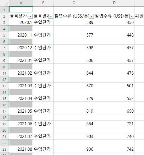 엑셀을 통해 문서 작업을 하던 중 아래 사진처럼 빈 줄, 빈행, 빈셀이 있을 경우 삭제하기 너무 번거로울 수 있다.