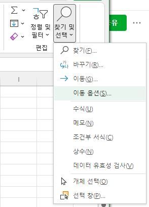 홈 - 찾기 및 선택 - 이동 옵션(S) 클릭한다.