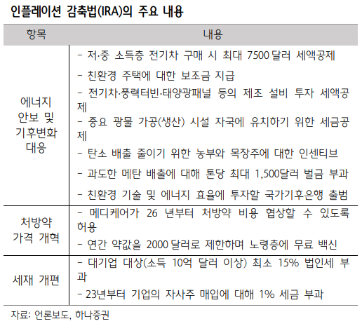 ▶ IRA 법안이 통과할 경우 수혜 기대되는 관련 산업과 시사점