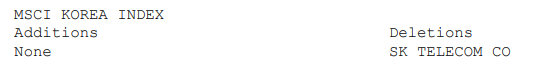 삭제 종목 : SK텔레콤(SK TELECOM CO)