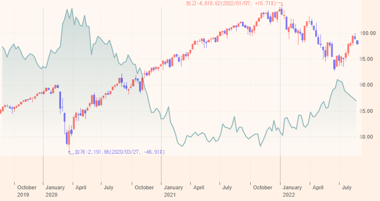 쉽게 설명하자면, 투자자들이 얼마나 보수적으로 투자를 하는지, 그리고 시장에 따른 투자 심리를 확인하는 지표가 되는 것이다.