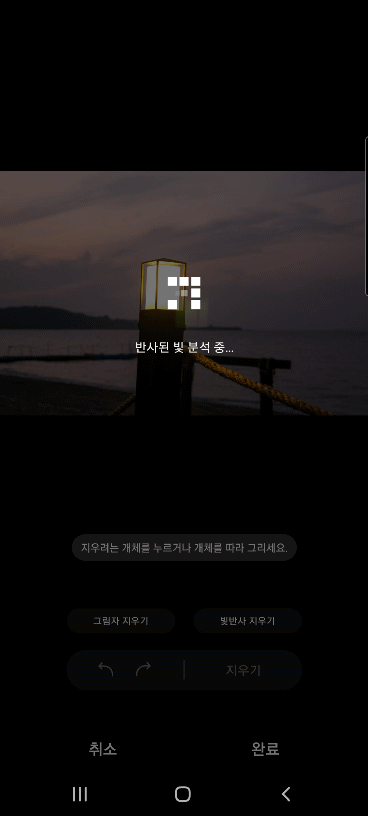 '빛 반사 지우기'를 클릭하면 반사된 빛 분석 중...이라는 문구가 나온 뒤 빛 반사된 부분만 없애준다.
