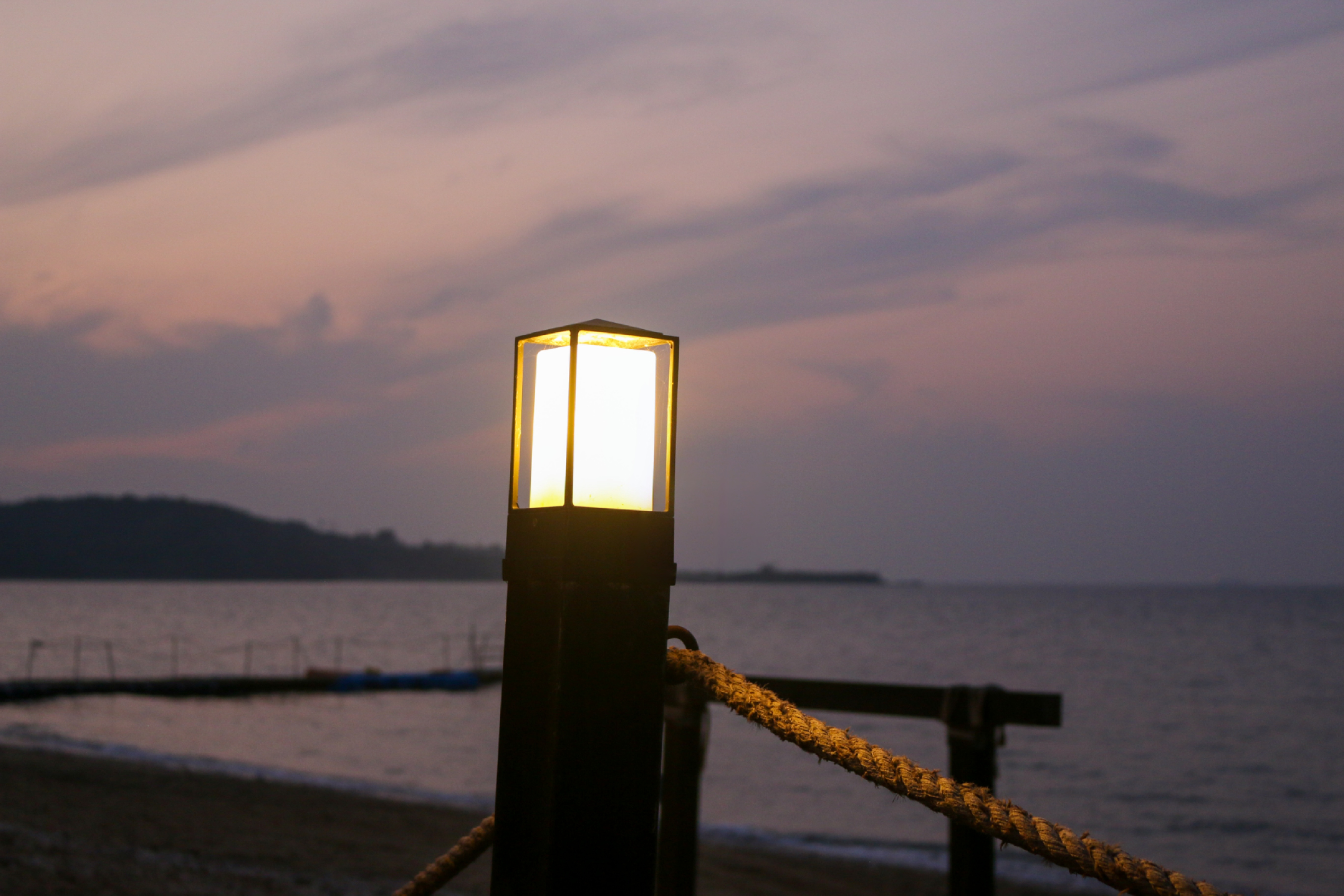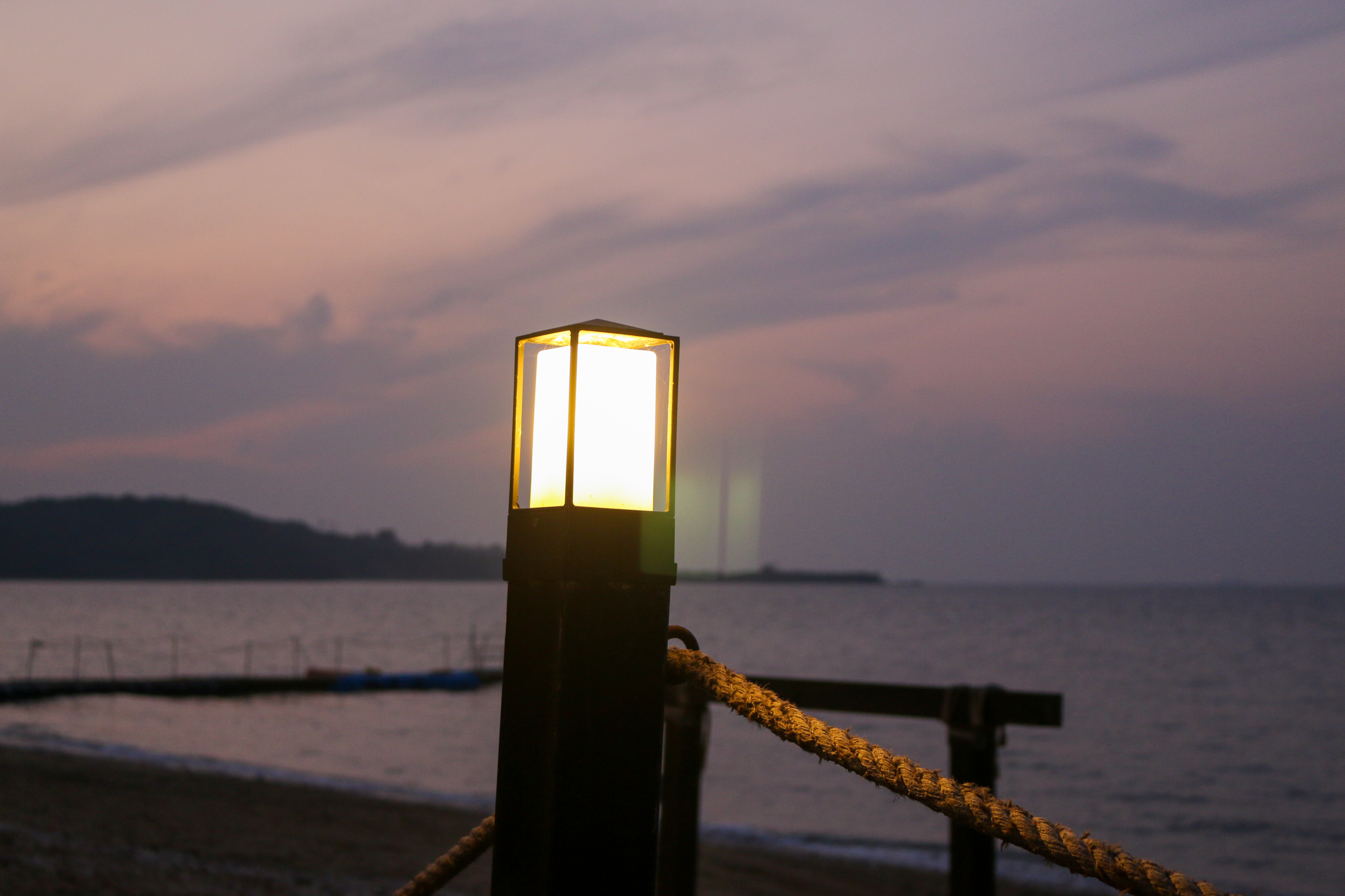 노을이 지고 있는 서해의 풍경과 가을의 쓸쓸함이 느껴지는 듯한 전등을 찍어보았다.