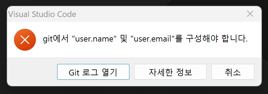 VScode(Visual Studio Code)에서 코딩을 한 뒤 git에 업로드할 때 발생하는 오류 메시지이다.