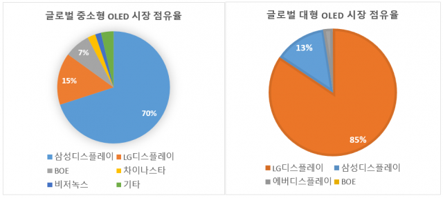 어쨌든 LG디스플레이와 삼성디스플레이가 차지하는 글로벌 OLED 시장은 대형 98%, 중소형도 85% 이상 차지하고 있다.