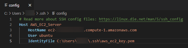 여기서 'C:\Users\사용자명\.ssh\config'을 클릭한다.