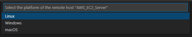 입력이 끝났다면, 'Ctrl+Shift+P'를 동시에 누른 뒤 'Remote-SSH: Connect to Host...' 클릭, 위에서 적은 Host 이름을 클릭하면 원격 접속할 서버의 운영체제를 선택하는데, 우분투(Ubuntu)를 설치했기에 'Linux'을 선택했다.
