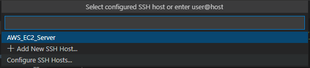이미 설정을 마쳐 놓았기에 상단에 하나가 떠있는데, 초기에는 두 개만 있을 것이다. 'Configure SSH Hosts...'을 클릭한다.