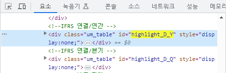 예시) div 요소의 id 속성이 'highlight_D_Y'으로 되어 있을 때