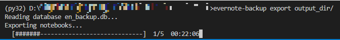 4. 'evernote-backup export 폴더명/'을 입력해 다운로드한 'en_backup.db'에서 '*.enex' 확장자 파일로 변환하여 꺼내준다.