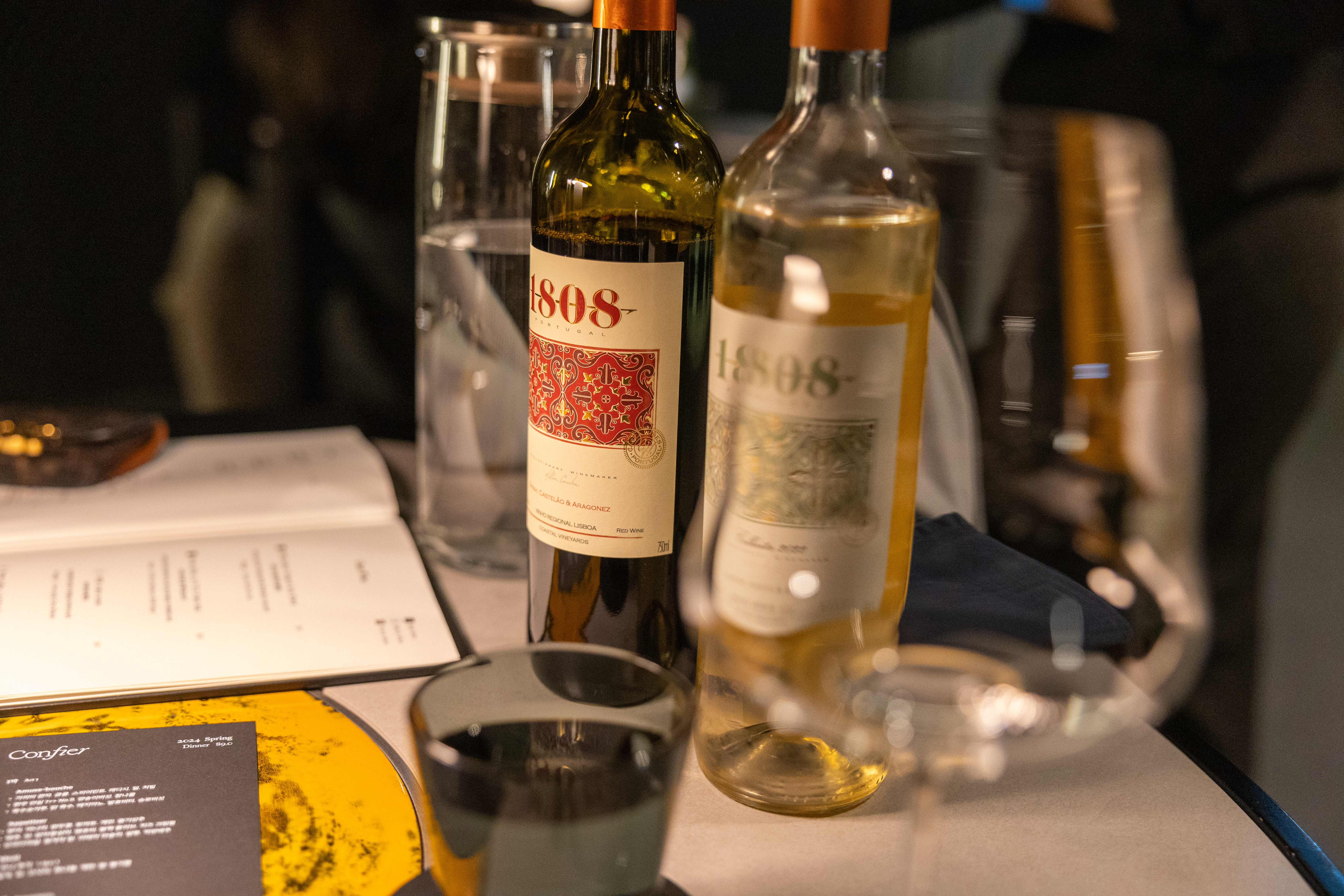 주류는 1808 리스보아 블랜드 레드 와인과 1808 비뉴 베르드 화이트 와인으로 선택했다.