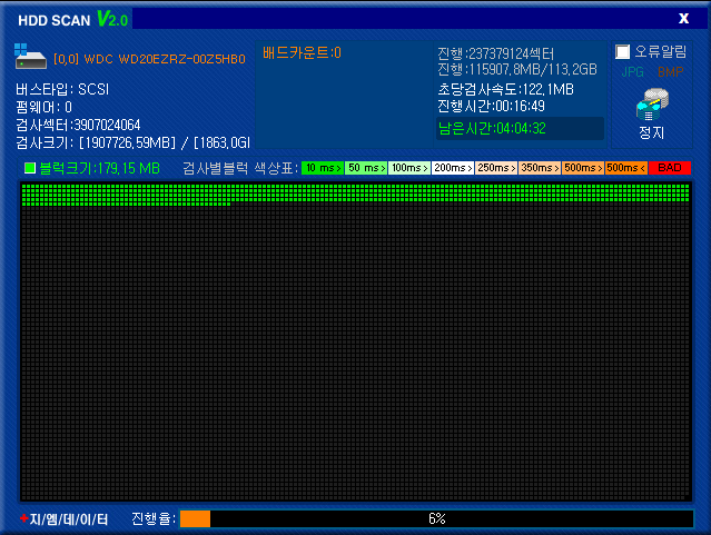 보다 더 정밀한 배드섹터 검사를 위해 '지엠데이터'의 HDD-SCAN v2.0 프로그램을 이용했다.