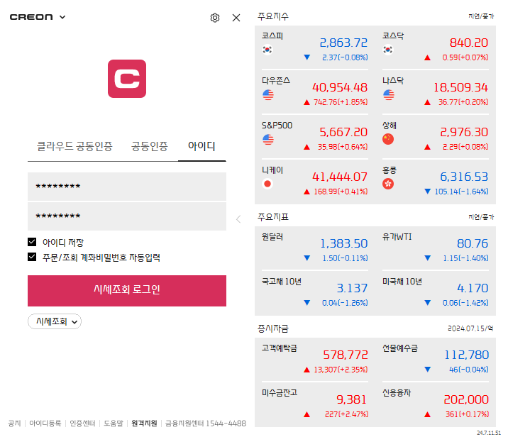 정상적으로 로그인 됐다면 크레온(CREON) HTS가 나온다. 그리고 닫은 후 다시 크레온 플러스(CREON Plus)을 실행하면 해결된다.