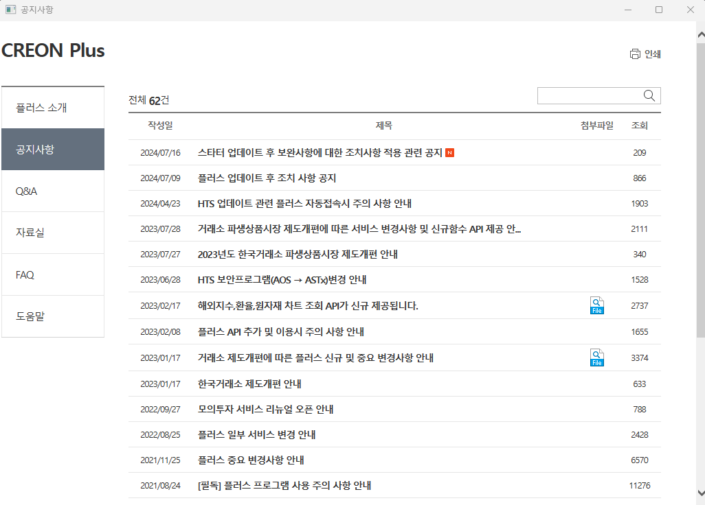 크레온 플러스 이용자의 경우 대부분 API를 활용한 프로그램 매매 및 보조 지표 등을 활용하여 매매를 하고 있을텐데, 이런 오류가 생기면 매우 당황스러웠을 듯 하다.