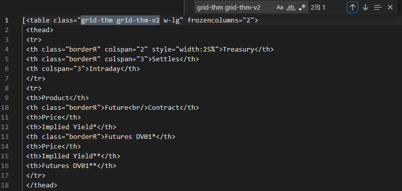 grid-thm grid-thm-v2로 검색하니 동일한 class 속성 값을 가진 table이 2개 나오는 것을 확인할 수 있었다.