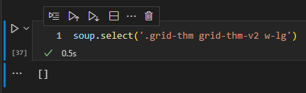 BeautifulSoup 라이브러리에서 제공하는 기능 중 'select' 기능을 사용하는 방법이다.
