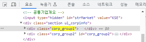 예시) div 요소의 class 속성이 'corp_group1'으로 되어 있을 때