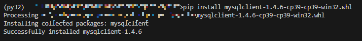 아무튼 의지의 한국인, 편법(?)을 사용해 파일을 잘 구해왔다. 그러나 mysqlclient 32bit 버전이 파이썬 3.9 까지 밖에 지원하지 않기 때문에 이후엔 다른 방법을 찾을 수밖에 없을 듯하다.